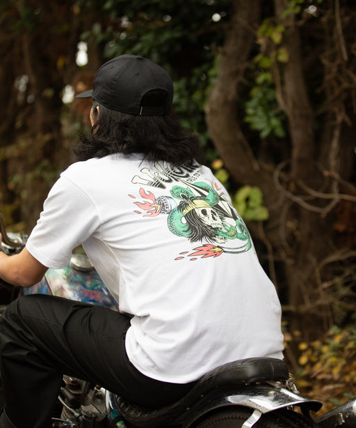 通常価格 ¥6,050 - 通常価格 ¥6,050通常価格¥6,050 (税込)¥6,050 - ¥6,050(税込)現在の価格 ¥6,050 (税込)ストリートに息づく“理由”や“背景”を独自に描き続けるアーティスト、FUSTY WORKS(Ken Sugihara)Collection。ホットロッド、チョッパー、ロック、絵本アートカルチャーの深いルーツから生まれたTシャツ。フロントのシンプルなロゴに対し、背中にはアーティストFUSTY W...