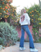 BILLABONG BEACH LOVER JEANSコレクションのデニムパンツ。レイドバックしたムードを醸し出すベルボトムシルエット。裾のフリンジデザインで遊びながら、脚が長く見えるきれいなラインを表現しました。厚さ12.5オンスの生地で、一年中楽しむことができます。バックポケットにあしらったウェーブデザインのステッチや、ウエストのレザーパッチがさりげないアクセントになっています。。