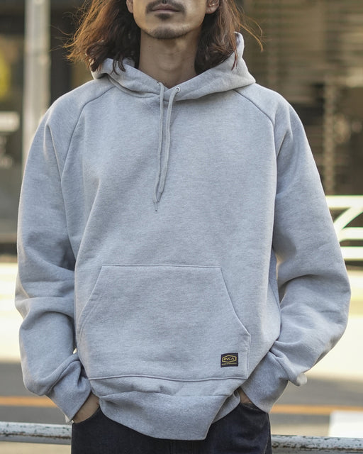ワークウェアのシルエットを現代的にアレンジしたRECSSESIONコレクションのプルオーバーパーカー。前面下部にRVCAタグを配したシンプルデザインを採用しつつ、ラグランスリーブやV字ガゼット、サイドリブなどディテールにこだわりました。