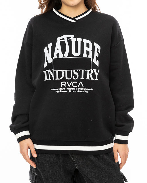【OUTLET】RVCA レディース PASTEUP V-NECK LOOSE FIT CREW トレーナー BLK 【2024年秋冬モデル】