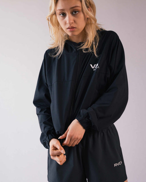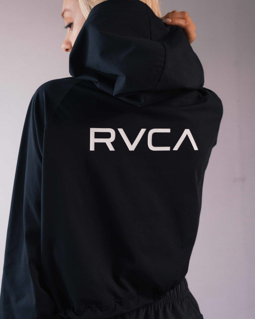 速乾性、UVプロテクション(UPF30)を備えたラッシュガード。着脱がしやすいジップアップフーディータイプで、首周りまでガードする立ち襟仕様です。着丈を短めに設定したコンパクトなシルエットが特長。裾口にはドローコードを内蔵し、好みのシルエットへ簡単にチェンジすることができます。左胸と背面にRVCAロゴをプリントで施しました。