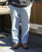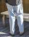 今季からスタートしたINDIGO COLLECTIONのデニムパンツ。長年履き込んだようなアタリや色落ち、ヒゲを表現した生地感が魅力。ヒップや太ももにゆとりを持たせ、裾にかけて徐々に細くなるワイドテーパードシルエットを採用。ウエストはゴム&内側のドローコードで簡単に調整可能。ワイドながらコーディネートのバランスが決まるサイズ感です。