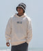 SIGNロゴをサガラ刺繍したパーカー。裏毛生地を使用。シルエットはオーバーフィット。