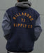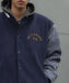 メルトン生地が魅力の中綿入りスタジアムジャケット。見頃にはメルトン、袖には洗い感のあるカットコーデュロイ生地を使用。リブのラインとバックに大きめに入った刺繍がポイント。