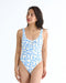 ブルーのグラフィックが印象的なワンピース水着。ざっくりと開いたバックスタイルが特長で、フロントは胸まわりを綺麗に見せるラウンドネックを採用。胸元のリボンもポイントです。背面のウエスト部分にBILLABONGのタグプレートを施しました。