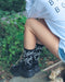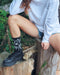シーズナルな総柄のパームツリー柄をジャガードであしらい、キュートなデザインに仕上げたリブソックス。ショーツはもちろん、長丈のパンツをロールアップして合わせるのにもぴったりのアイテムです。足裏部分にもアーチロゴをジャガードでデザインしました。レッグ部分にリブを採用することで、フィット感も抜群です。