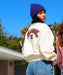 ショート丈でゆったりとしたLOOSE CROPPEDのシルエットで、裏毛素材を使用したベーシックな質感のスウェットクルーネックトレーナー。低発泡の上に発泡プリントを重ねたコーデュロイアップリケ調のバックプリントが特徴の一着です。袖は3枚はぎでボリューム感を出し、襟元にはリブ切り替えのガゼットをデザインしました。袖口のリブを長めに仕上げたのもポイントです。