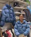 デニム素材のパフジャケット。たっぷりの中わたを封入した保温性抜群のヘビーアウターです。裾にシルエットチェンジができるドローコードを搭載。フロントの左胸にブランドロゴを配し、センターバックにはロゴワッペンをあしらいました。