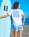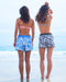 シーズナルな総柄をあしらったボードショーツ。ウエストの表は同柄生地を使用し、内側にはBILLABONGのロゴ入りのジャガードゴムを採用。ハイウエストからローウエストに折り返して2WAYでの着用が楽しめるのがポイントです。ウエストはゴム+ドローコードでサイズ調整が可能。フロントの左裾にはウェーブロゴを付け、サイドポケットを配備しました。UV機能付きポリストレッチ素材で、股下7cmのショート丈。同柄のスイムウェアとセットアップでの着用もおすすめ。