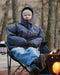 ポリエステル100%の裏フィルム構造マイクロリップストップ素材を使用した中綿フードジャケット。