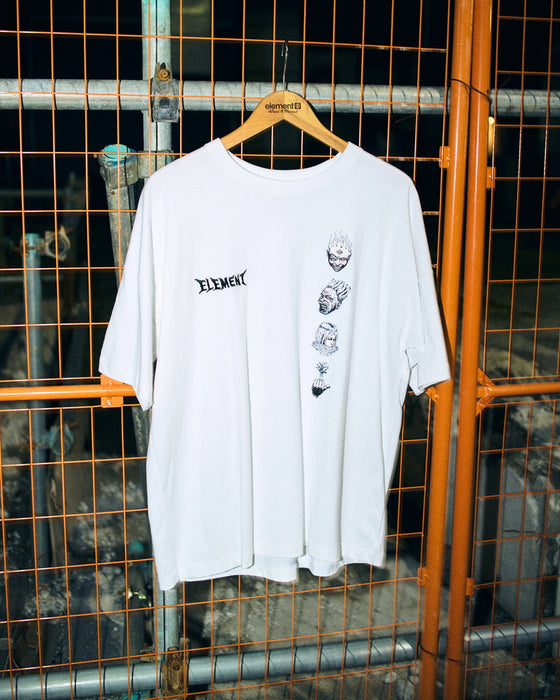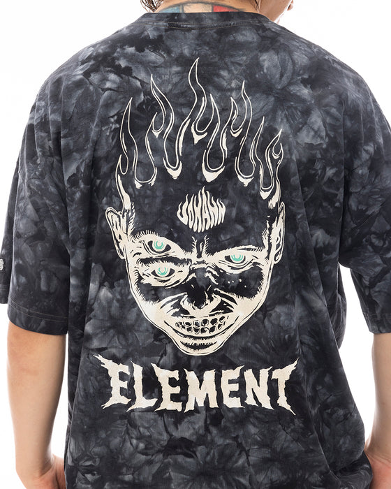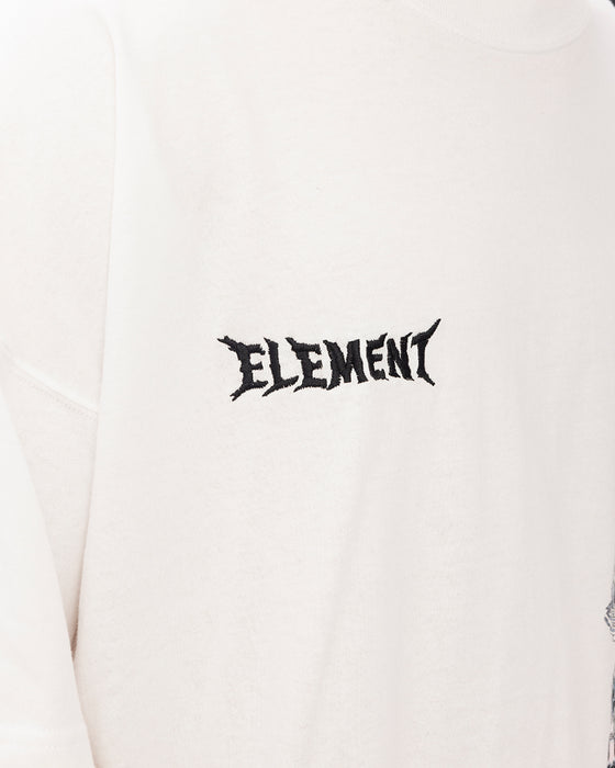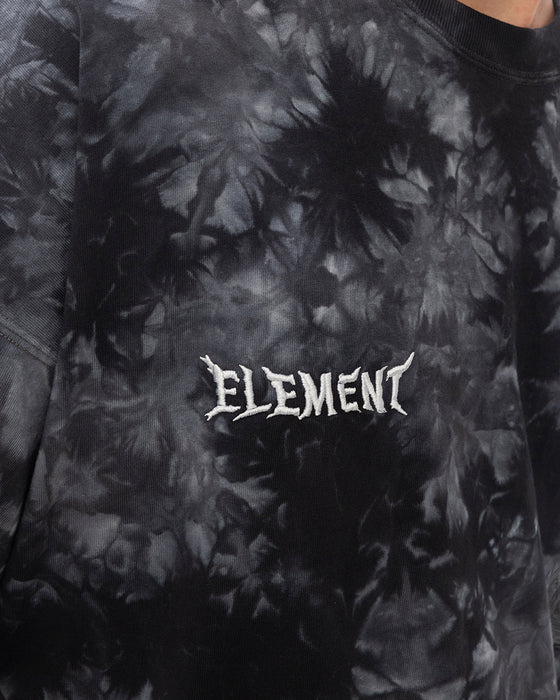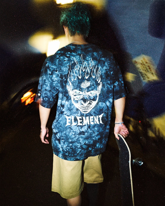 フロントにはELEMENTのブランド要素である「WIND,WATER,FIRE,EARTH」の4つがグラフィックで表現されている。バックにはFIREのグラフィックを大きくプリント。左袖にはツリーロゴのパッチ。