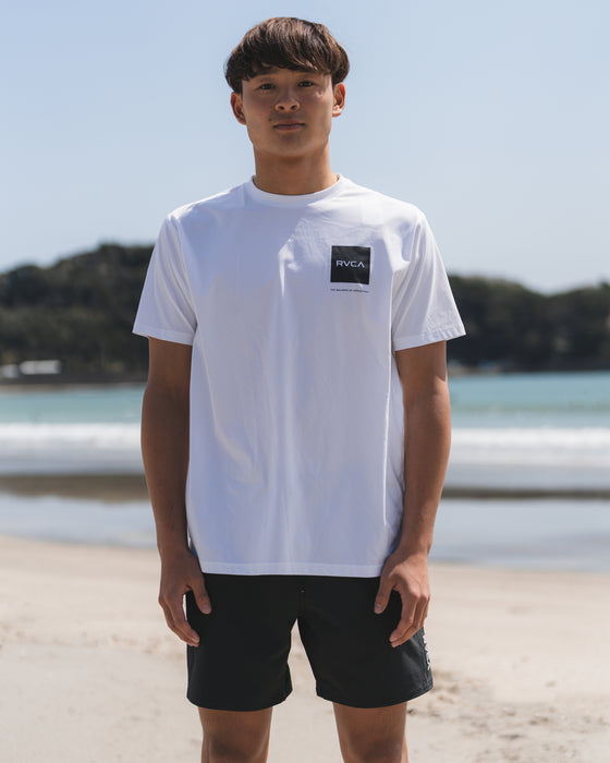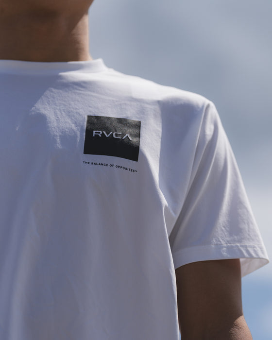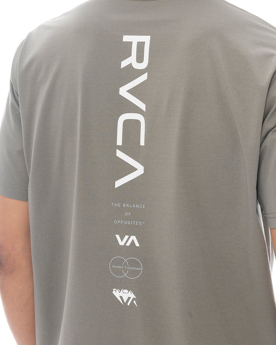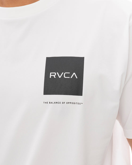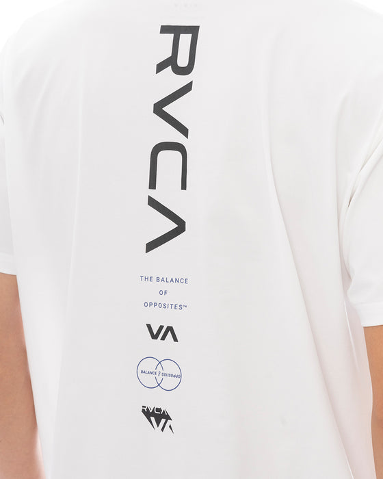 吸収した水分を素早く乾かす速乾性と、日差しから肌を守るUVプロテクション(UPF50)を備えたクルーネックの半袖ラッシュガード。左胸と背面センターにRVCAロゴをプリントしました。ビーチやプールでのトップス、またはトレーニングウェアとして重宝します。
