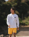 サラッとした肌あたりで、クイックドライとUVプロテクション(UPF50)、塩素対応を備えた長袖タイプのラッシュガード。背面と左胸に6角形のRVCAロゴを配し、左袖にもネームロゴをプリントしました。袖口はリブ仕様で、ややゆったりとしたの大きめなシルエットを採用しました。
