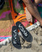 鼻緒部分とインソールにRVCAロゴをあしらったビーチサンダル。フットベットにVAのエンボスロゴをあしらい、RVCAロゴをプリントで施しました。素材には耐候性、撥水性のあるシンセティックレジンを使用。もうすぐ来る本格的なサマーシーズンに向けて、必ず揃えておきたいマストアイテムです。