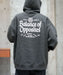 ポリエステルコットンのオリジナル素材、ハーフブラッシュドテリーを使用し、通常の半分の起毛量で軽やかさと快適な着心地を両立そたプルオーバーフーディー。季節の変わり目や温暖な気候にぴったりで、さまざまなスタイルやコーディネートに合わせやすい一枚です。起毛感が控えめなので、厚手すぎず幅広いシーンで活躍します。バックには大きく“THE BALANCE OF OPPOSITES”のメッセージをプリントしました。