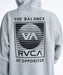 フロントにビッグRVCAのロゴ、バックに“BALANCE OF OPPOSITES”とクールなグラフィックをプリントしたプルオーバーフーディー。ボディには、洗濯と乾燥を繰り返したようなタフでドライな質感の素材を使用。ほどよいハリとこなれた風合いが、シンプルなスタイリングにも映える一着。やや大きめなゆとりのあるシルエットを採用しました。
