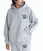 程よいリラックス感があり、シルエットはすっきりとしたフーディ。グラフィックはセットアップでのコーディネートを考慮して配置されており、スタイリングしやすい一枚です。胸元、袖、バックにヴィンテージライクなフォントデザインのプリントを施しました。