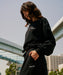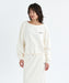 コットンポリエステルのテリー素材を使用したオフショルダーデザインのスウェットトップス。片側だけ肩を落としたアシンメトリーなシルエットが、抜け感と女性らしさを演出します。ウエスト部分はドローコードで調節可能で、シルエットに変化をつけて楽しめるのも魅力。ミニマルなロゴデザインがアクセントになり、カジュアルながらも洗練された印象の一着です。同素材のロングスカートと合わせたコーディネートがおすすめです。