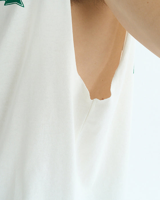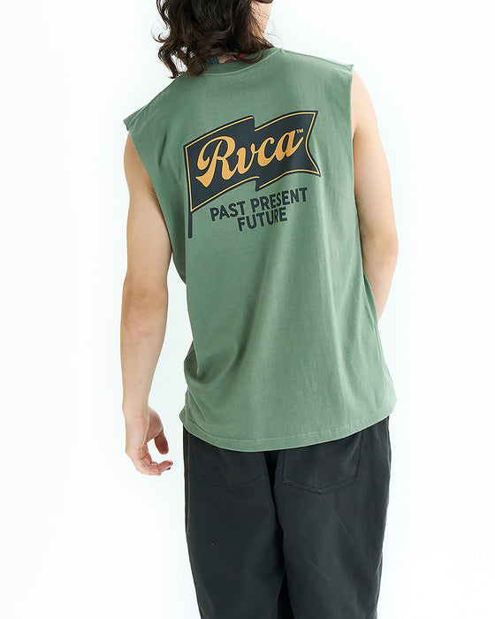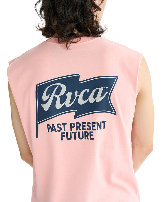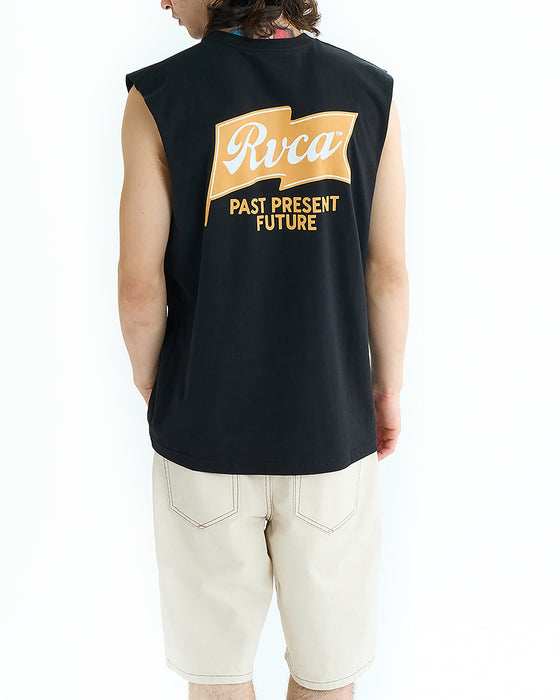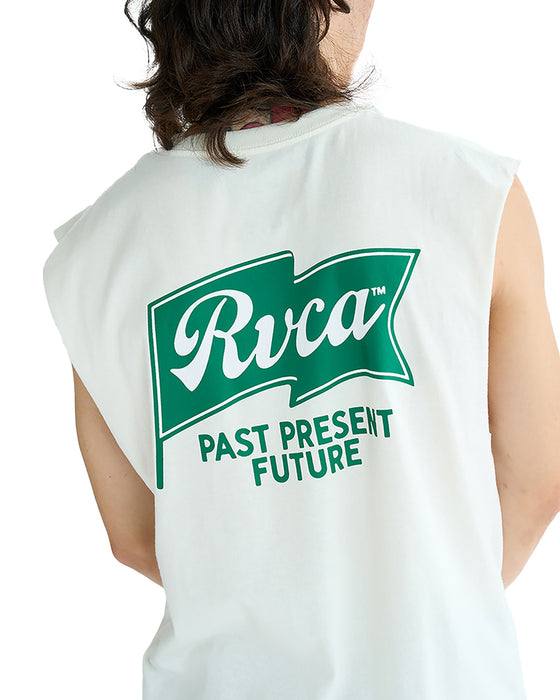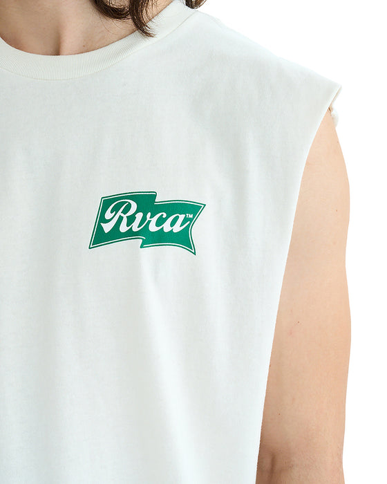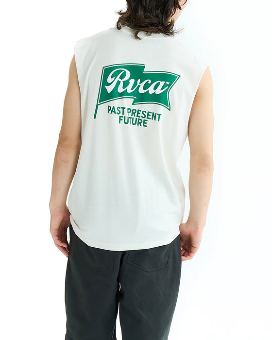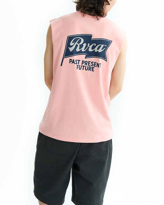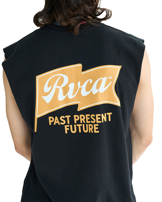 胸元と背面にRVCAのグラフィックをあしらったフラッグと“PAST PRESENT FUTURE”のメッセージをプリントした、カットオフタンクトップ。滑らかなタッチが心地よいコットン100%素材を使用しました。タイト過ぎず、ワイド過ぎないベーシックなシルエットです。