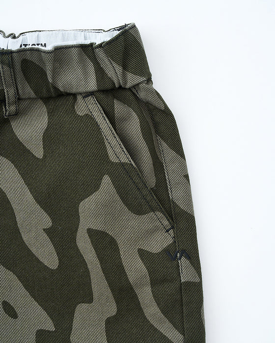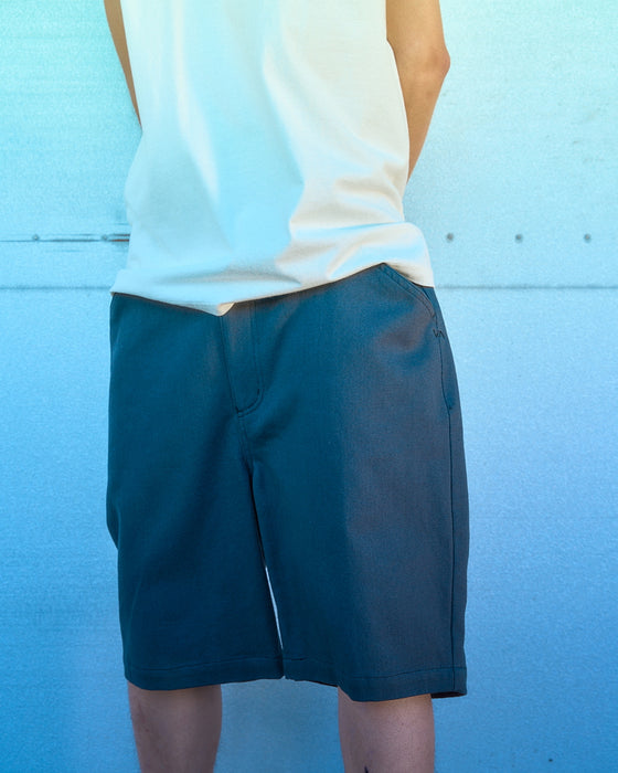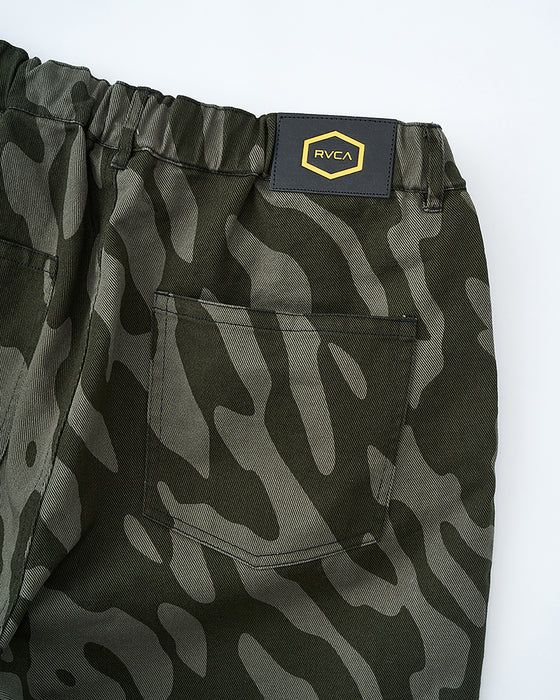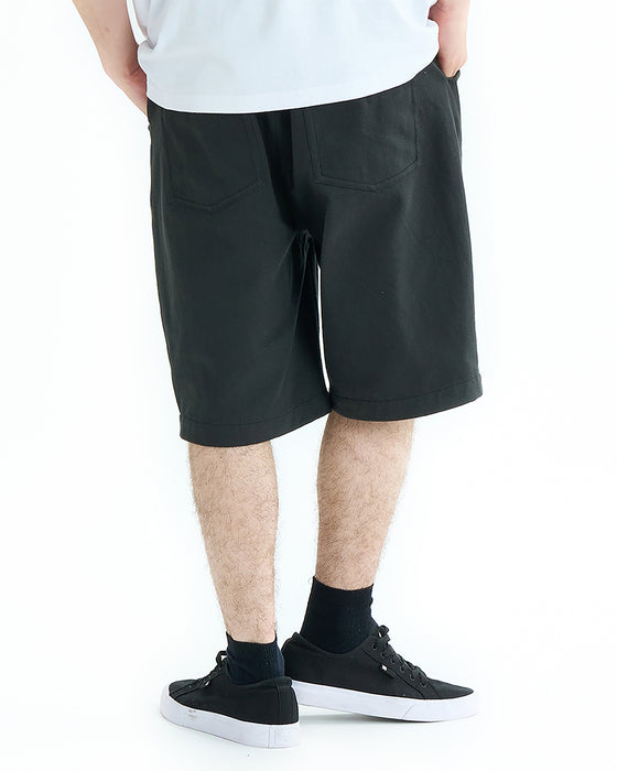 存在感のあるワイドシルエットのデニムのショートパンツ。程よくルーズで、スニーカーとの組み合わせも抜群です。ウエストはイージーパンツ仕様に変更し、より快適な履き心地へとアップデート。左ポケット部分にワンポイントでVAロゴがステッチで施されています。無地とカモフラ柄での展開です。