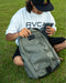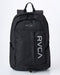 前面に出し入れしやすい縦型ジップポケットを備えたバックパック。両サイドにウォーターボトルが収まるポケットを設け、メインコンパートメント内部はPCスリーブとファスナー式メッシュポケットを装備。フロントにRVCAロゴをプリントし、バックパネルにはステッチでネームロゴをデザインしました。