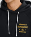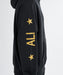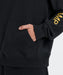 RVCAとモハメドアリのコラボレーションによるフードパーカー。フロントにはアリの名前を刺繍で施しました。両腕にはそれぞれ異なる文字をプリント。カンガルーポケット付きです。裏毛素材を使用し、袖口と裾はリブ仕様に仕上げました。