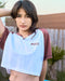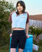 100%コットン素材のクロップド丈Tシャツ。ラグランスリーブでバックと胸元にはロゴとグラフィックをプリントしました。キーネックのデザインで、アウトステッチをあしらっているのがポイントです。ハイウエストボトムとベストマッチするアイテムです。