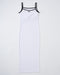 タイトシルエットのロング丈キャミワンピース。肩紐は配色使いがポイントです。フロントにはRVCAロゴを刺繍で施しました。裾はスリット入りで足捌きも快適です。胸元はカップ付きで1枚で着用可能です。