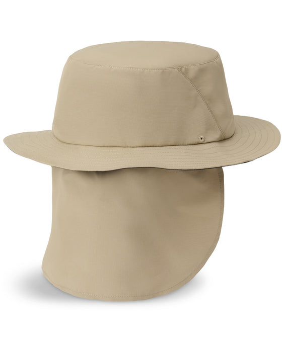 UVプロテクション(UPF50+)を装備した、サーフやSUP、プールに適したフローティングハット。取り外し可能なネックシェードで、首元までしっかりとカバーします。パドリング時に邪魔にならないように調整可能なつばと、長さ調整ができるストラップ付き。