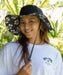 トレンドを意識した、ワイドブリムのビーチハット。ちらっと見えさせてアクセントになるよう内側にシーズナル柄をプリントしました。サイドにはアーチロゴの刺繍を付けワンポイントにしました。取り外しができる便利なループストラップ、内側にはサイズ調整ができるアジャスター付き。撥水加工をほどこしているので、水遊びやアウトドアでラッシュガードとコーディネートを楽しめます。また、タウンユースもできるユーティリティアイテムです。