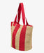 ・レッドのストライプデザインが特徴の、ナチュラル感あるトートバッグ