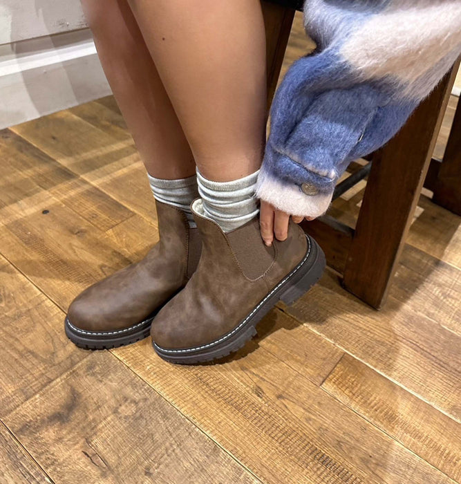 ソール部分のステッチがトレンド感のあるサイドゴアブーツ。シンプルなデザインなので、どんなコーデにも合わせられます。4cmのヒールでスタイルアップも可能に。内側はボア素材で暖か仕様です。防水加工を施しているので、雨の日も安心。