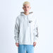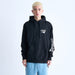 裏毛のフリース生地を使用したフーディ。バックを彩るエイトボールとダイス、タギング調のロゴグラフィックには膨らみのある発泡プリントを採用し、より印象的に仕上げました。左胸元と左袖にもプリントを施し、ドローコードのチップにはさり気なくDCスターロゴをレイアウト。大人のストリートスタイルにアクセントをプラスしてくれます。