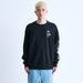 裏毛のフリース生地を使用したクルーネックのプルオーバー。スケボーでピザを運ぶユニークなグラフィックが印象的なバックスタイルを演出します。左胸元と左袖にはロゴプリントをレイアウト。ストリートカジュアルなコーディネートにおすすめのアイテムです。BKDはピグメント加工を施し、ヴィンテージライクに仕上げました。