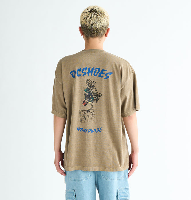 ハンドプラントを決めるスカルのキャラクターがインパクト抜群の半袖Tシャツ。バックスタイルから個性をアピールします。対するフロントは胸元にロゴを配したシンプルな仕上がりに。ピグメント加工を施したバリエーションもラインナップ。大人のストリートスタイルに遊び心を加えるキャッチーなアイテムです。