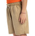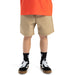 着回しのきくベーシックカラーをそろえた定番のウォークショーツTAXERのユースサイズ。ストレッチ性のあるコットンベースの生地にエンザイムウォッシュ加工を施すことで、絶妙なユーズド感を演出しました。ウエストはシンプルなゴム+ドローコード仕様。両サイド・バックポケット付き。レングス15インチ。アクティブシーンでも活躍する使いやすい一枚です。