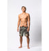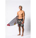 QUIKSILVERボードショーツのトップパフォーマンスHIGHLINEシリーズ。水中で動きを妨げない抜群のストレッチ性と通気性、クイックドライ機能を持つリサイクルポリエステル製HIGHLITE生地に、環境に優しいPFCフリーの撥水加工を施しました。サイドから裾部分のカーブラインによって高い可動性を持つSCALLOPフィット。FIXウエスト、ドローコード仕様。ヒップに鍵用バンジーコード付きフラップ面ファスナーポケットを配備。レングス19インチ。