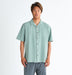 独特の質感を持つシアサッカー生地を使用した清涼感のある開襟半袖シャツ。凹凸があるため肌にまとわりつきにくく、暑い夏の日にも軽やかな着心地を持続します。チェストポケット、左裾には山波ロゴラベルをレイアウト。爽やかなブルーカラーがコーディネートをファッショナブルに仕上げます。シルエットは汎用性の高いレギュラーフィット。