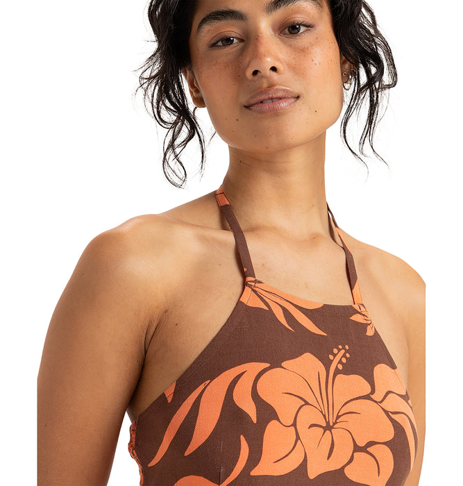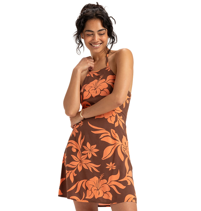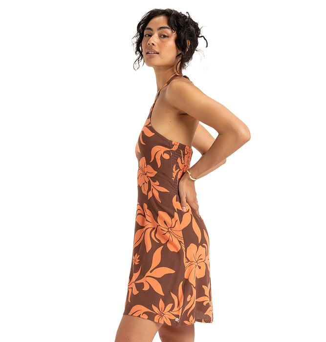 【OUTLET】Roxy AFTER GLOW MINI CREPE ウィメンズ ミニ丈ドレス 花柄 ホルターネック <2025 ETERNAL SUMMER COLLECTION>