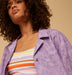 女優ケイト・ボスワースとのコラボレーション。自由で大きな心を持つSurf girlsのためにデザインされた、サステナブルなコレクションです。オールドハワイをイメージした、ヴィンテージアロハ風のシャツ。サイドに少しスリットを入れ、バックサイドはヨークにダーツを取った、ルーズフィット。ハワイをモチーフにした総柄プリントに、ROXYマークをワンポイントで刺繍しました。水着の上の羽織りとしても、インナータンクにデニムやスカート合わせで、ビーチからタウンまで使えるアイテムです。