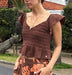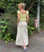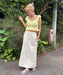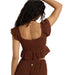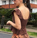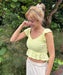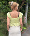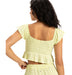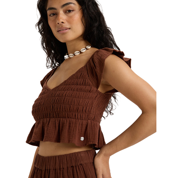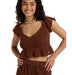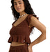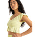 コットン100%のダブルガーゼ生地が肌触りの優しい、クロップド丈のトップスです。ボディ部分をシャーリングで仕上げたことで、シルエットをキレイに見せてくれます。裾と袖はフリルのデザイン。肩の部分にはラバーの滑り止めを貼り付けているので、ズレやすさを軽減しました。コンパクトなデザインでパンツやタイトスカートなど、合わせるボトムでいろんな着こなしを楽しめます。同素材のボトムとセットアップにするのもおすすめです。フェミニンながら、甘すぎないのもGoodです。