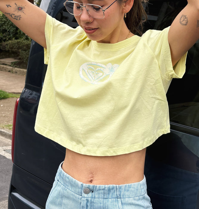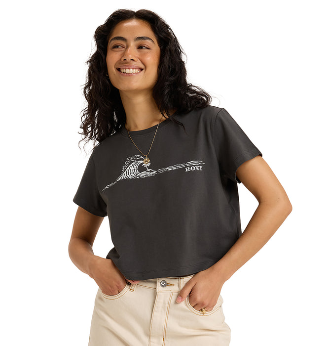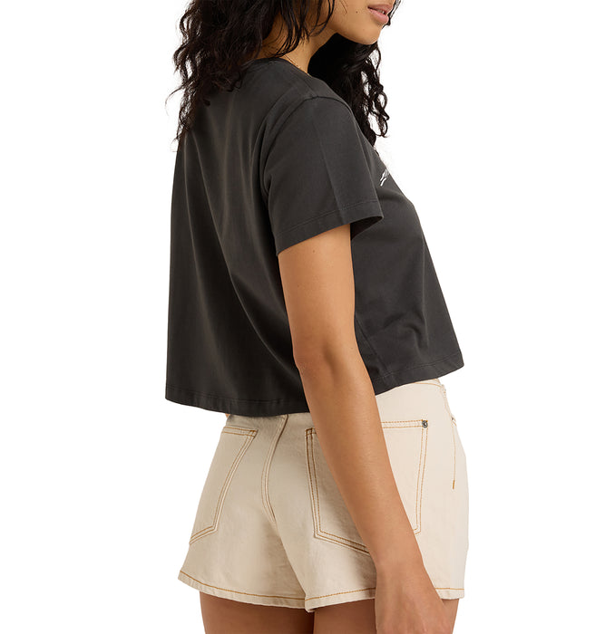 【OUTLET】Roxy PEOPLE SPEAK ウィメンズ 半袖Tシャツ 丈短め オーガニックコットン <2025 ETERNAL SUMMER COLLECTION>