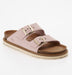 人体構造に基づいて設計されたフットベッドと調節可能なバックルストラップを備えたサンダル。スペイン・エルチェの工場で持続可能に生産。コルク&フォームのインソールが足をサポートし、圧力を分散、安定性を向上。軽量EVAソールで快適な歩行を提供。