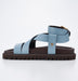 テクスチャーと人体構造に基づいて設計されたフットベッドを備えたサンダル。甲に交差したストラップと足首で調整可能。LWGゴールドステータス認定レザーを使用。エルチェの工場で持続可能に生産。コルクとフォームのインソールが足をサポートし、圧力を軽減、安定性を向上。軽量EVAアウトソールで快適な歩行を提供。