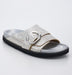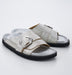 Kaiteは、洗練されたスクエアトゥと幾何学的バックルが印象的なモダンレザーサンダル。調節可能な甲ストラップと、快適性を追求したシグネチャーフットベッドで、日常に上質な履き心地をプラスします。