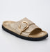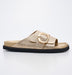 Kaiteは、洗練されたスクエアトゥと幾何学的バックルが印象的なモダンレザーサンダル。調節可能な甲ストラップと、快適性を追求したシグネチャーフットベッドで、日常に上質な履き心地をプラスします。