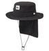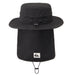 水や雨の重さでつばが下がらないよう視界を安定させるブリム前面のぺフ芯仕様で、首後ろの日焼けを防止する垂れとあごゴム紐付き。撥水加工の軽量ポリエステル/ナイロン素材で、通気性の良いベンチレーション構造なので、ビーチやプールなどのウォーターアクティビティをはじめとしたアウトドアのシーンや梅雨時期にもベストマッチなアイテムです。垂れとあご紐を取外して使用できるので、汎用性の高さも特徴のベストセラー多機能プロダクト。カラーはBLACK、MULマルチカラー(全カラー UV CUT UPF50+)の2色展開です。