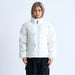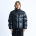 程良い光沢感のあるシンセティックレザーを使用した中綿入りジャケット。中綿は細かくちぎり、ダウンライクに仕上げました。襟高で防寒性も抜群です。左胸元には生地色と同色のオーバルロゴ刺繍をレイアウト。両サイドのウエストポケットに加え、内ポケットを配備。トレンドのショート丈で、スタイリングのバランスを取りやすいデザインが魅力。