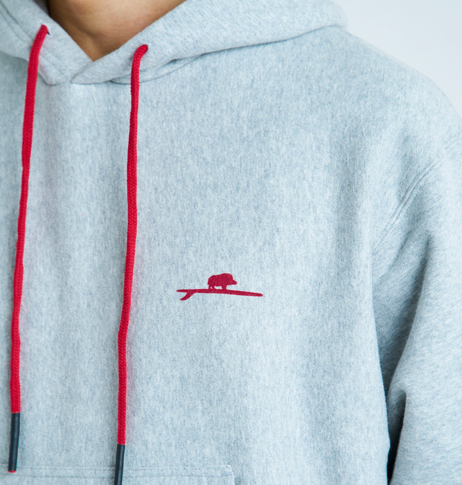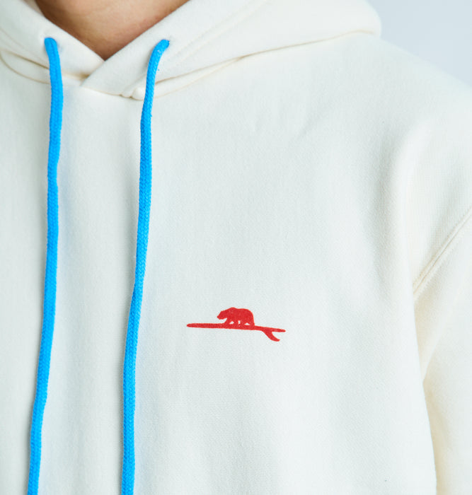 コットンとポリエステルの混紡生地を裏起毛にすることで、厚みと張りのある生地感に仕上げたフーディ。左胸と背中には州を象徴する動物モチーフのグラフィックをフロッキープリントで仕上げました。トレンドに合わせてアップデートしたルーズシルエットも魅力。