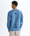 程良いハリと厚みを持つ裏毛を使用したクルーネックスウェット。ユーズド感を出すため、特別なウォッシュ加工を施しました。左胸と背中に今シーズンを象徴するメッセージやロゴのアレンジを加えたグラフィックをプリント。サイドポケット付き。シルエットは程良くゆとりのあるルーズフィット。